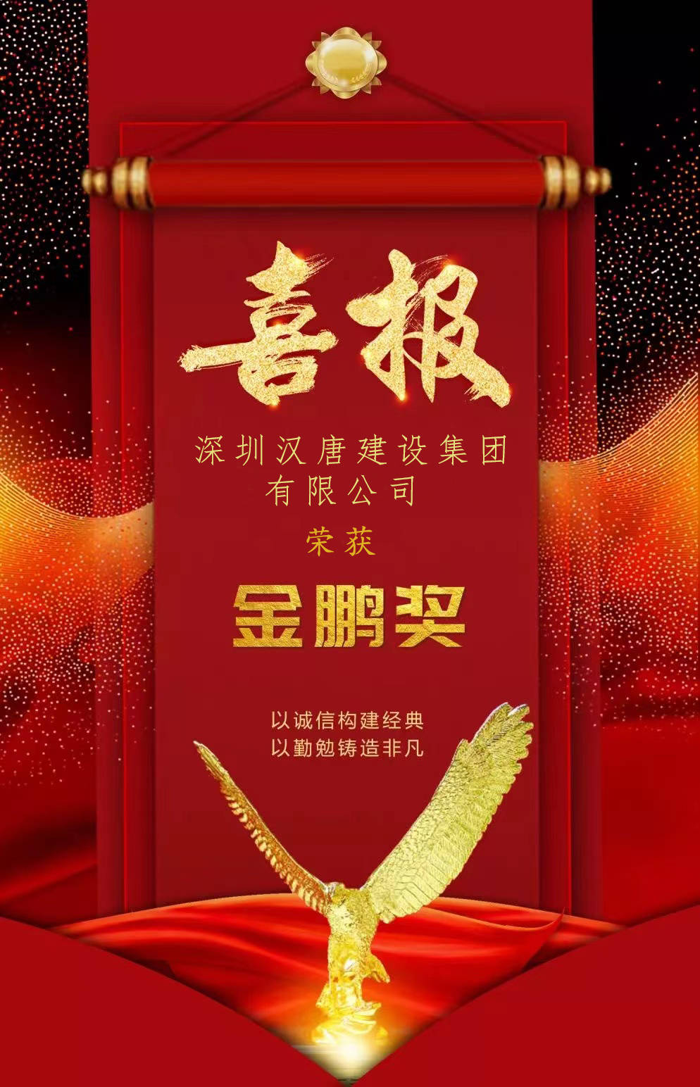 作为一家在行业内具有较高知名度的企业,明博电竞手机版一直秉承着“为客户创造价值”的使命,不断优化服务质量,提升自身实力。如今,荣获“金鹏奖”不仅证明了汉唐建设过去的辉煌成就,更激励着企业在未来的发展道路上继续创新、追求卓越。