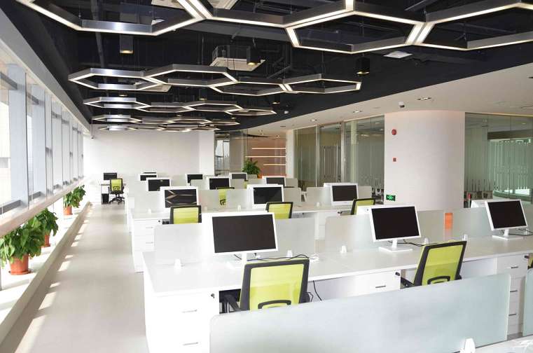 接着就是办公区域的装修,大型装修公司的办公区域要么是半开放式,要么是全开放式。半开放式就是每个员工的位置都有用格子隔开,用于区分不同的部门;而全开放式则是在一个大面积的场地直接摆放上办公用品,这样的设计可以从办公室看到外面的一切。因此在设计办公区域时,可以根据需求进行设定。