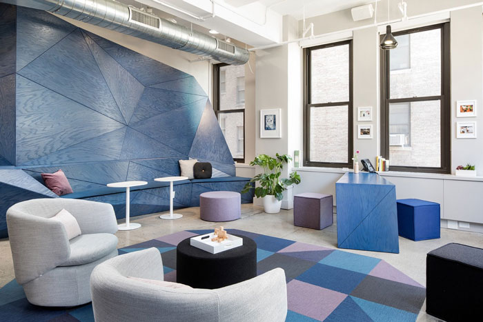 使用几何图案作为设计元素,使用新式装修材料,明亮度对比强烈。适用于新兴的电脑资讯业、媒体行业。