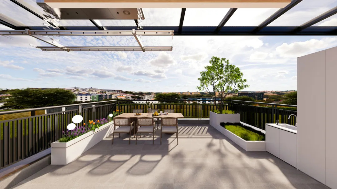 露台作为顶层“空中花园”,玻璃顶设计兼顾遮阳挡雨与视野通透;户外桌椅、花箱绿植错落,构建休闲观景、社交聚会场景,让居者俯瞰远景、亲近自然,延展别墅生活的诗意维度 。