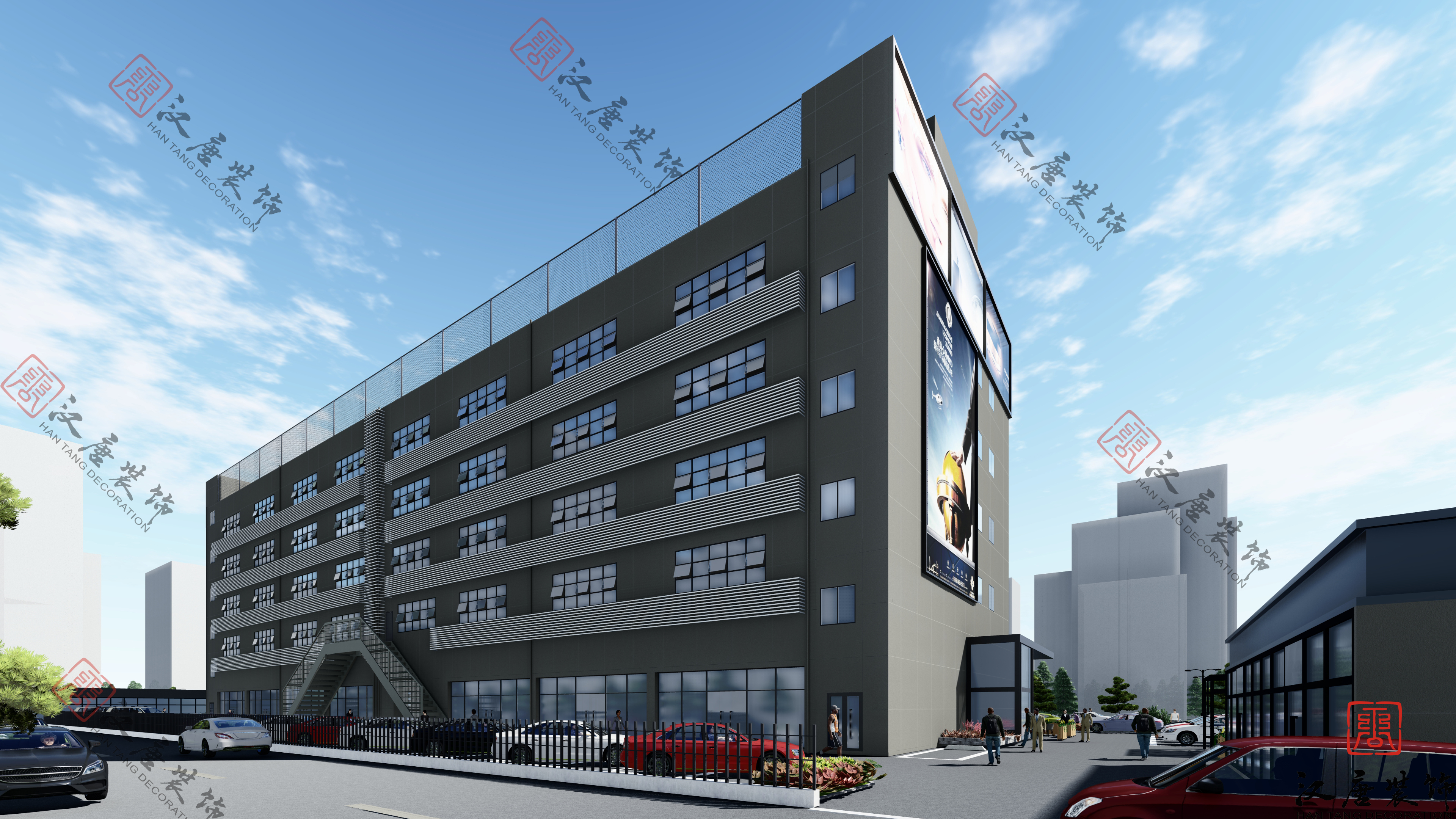 建筑幕墙结合空调装饰及雨棚设计,以线条的脉动体现建筑立体层次,粗线的纵向造型由下而上,设计体现了一股上升的力量感和积极向上的精神张力。