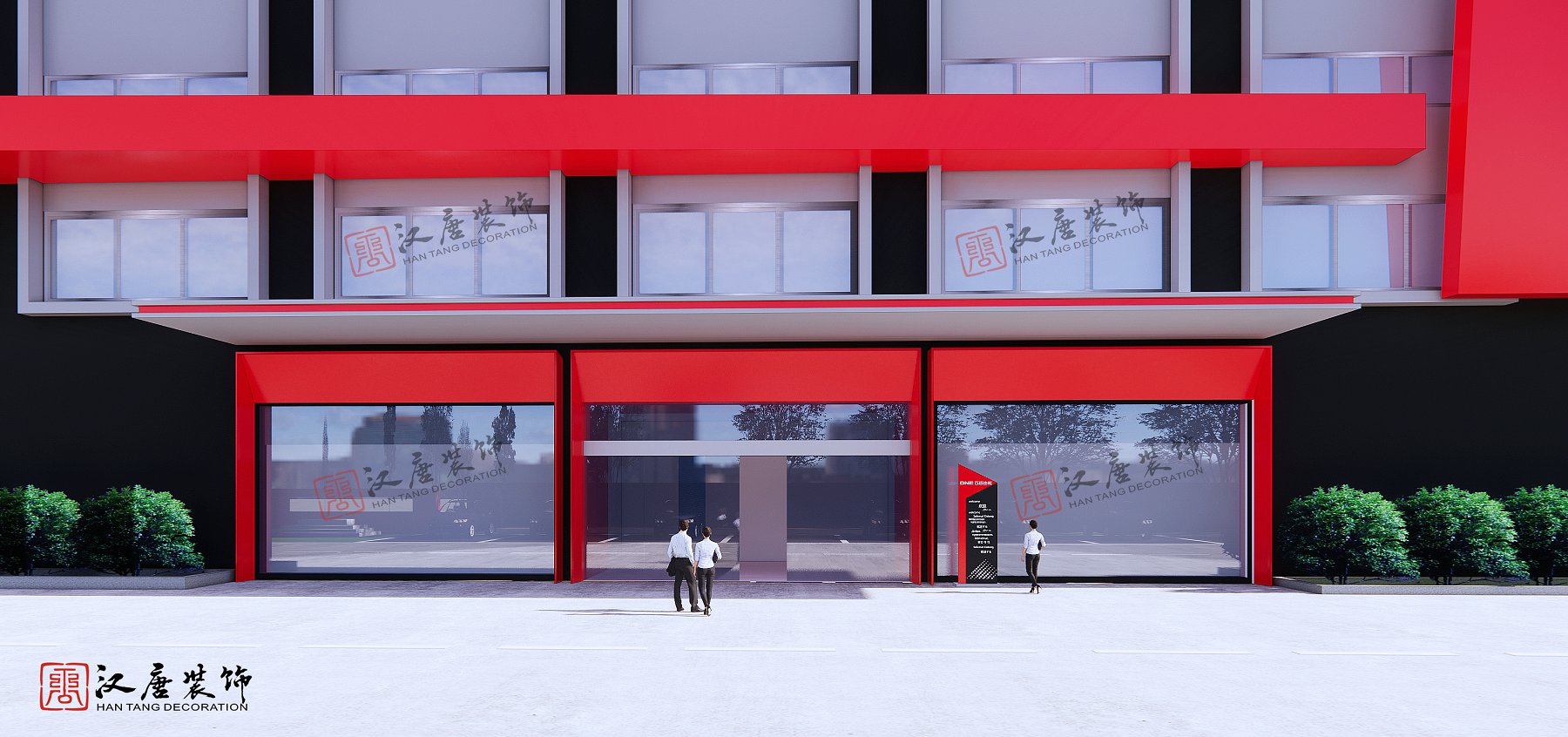 项目名称:深圳市百超迪能激光科技有限公司工业园改造设计工程项目地址:深圳市宝安区沙井街道坣岗社区中日龙路12号 项目总面积:园区总占地3.6万㎡,室内面积4万㎡,园林整体规划,外观升级设计说明:本方案的业态为激光科技类公司,为瑞士合资企业,甲方诉求需要设计国际化、现代简约、有科技感,根据企业色,外观主色调为深黑色,配色为红色、白色,稳重的同时又不显呆板,展现了企业的活力,展厅空间设计科技感,白色,灰色作为主色调,为企业增色,更好的展示好产品的优点,让企业更具竞争力。