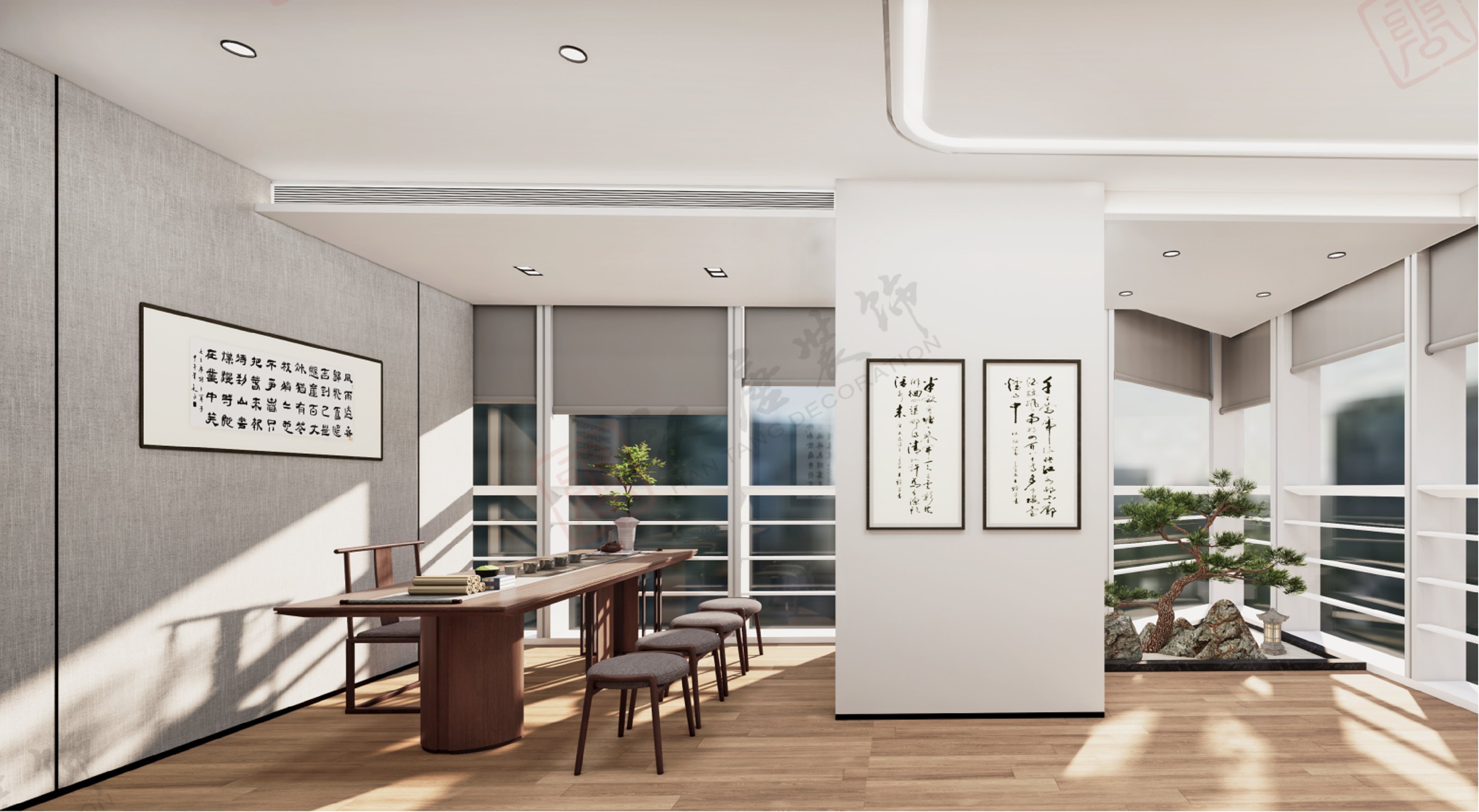 以创新的手法融入现代年轻化办公概念,用材料精致的质感来迎合感官,满足功能的合理性也处理了动静等关系,既实用又清雅。