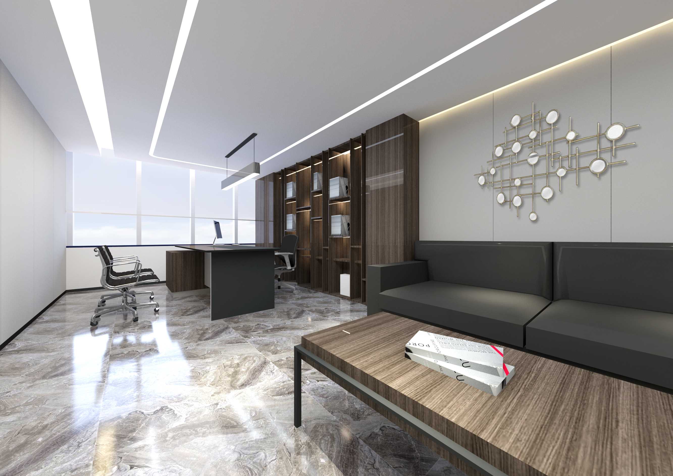 设计说明:整个空间采用曲线进行设计表达,柔美的曲线使得空间层次分明,视野开阔。同时通过浅色调将原本光线不足的缺点进行弥补。整个设计简约而不简单,将严谨的办公环境中植入了一份轻松的感觉。