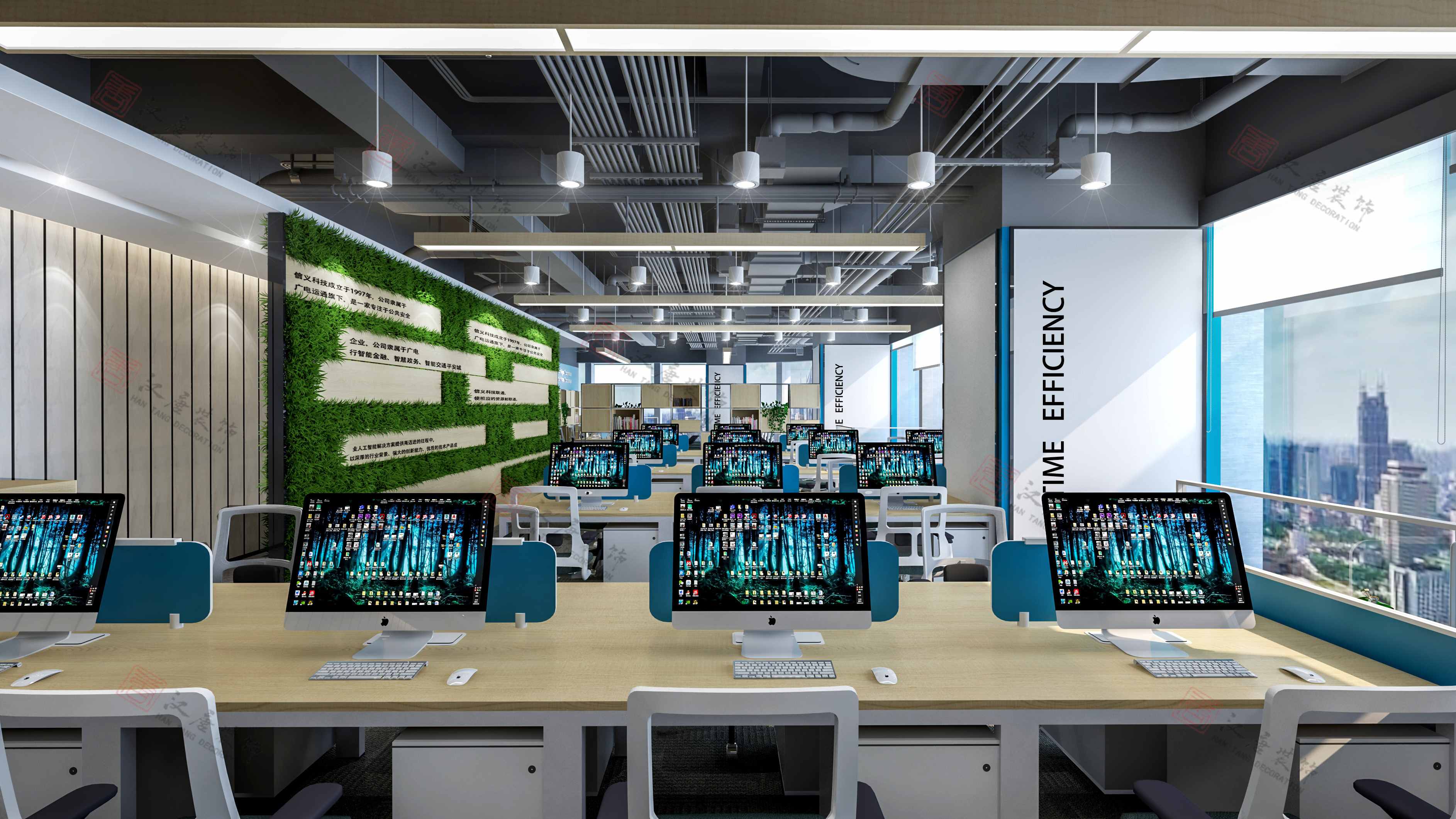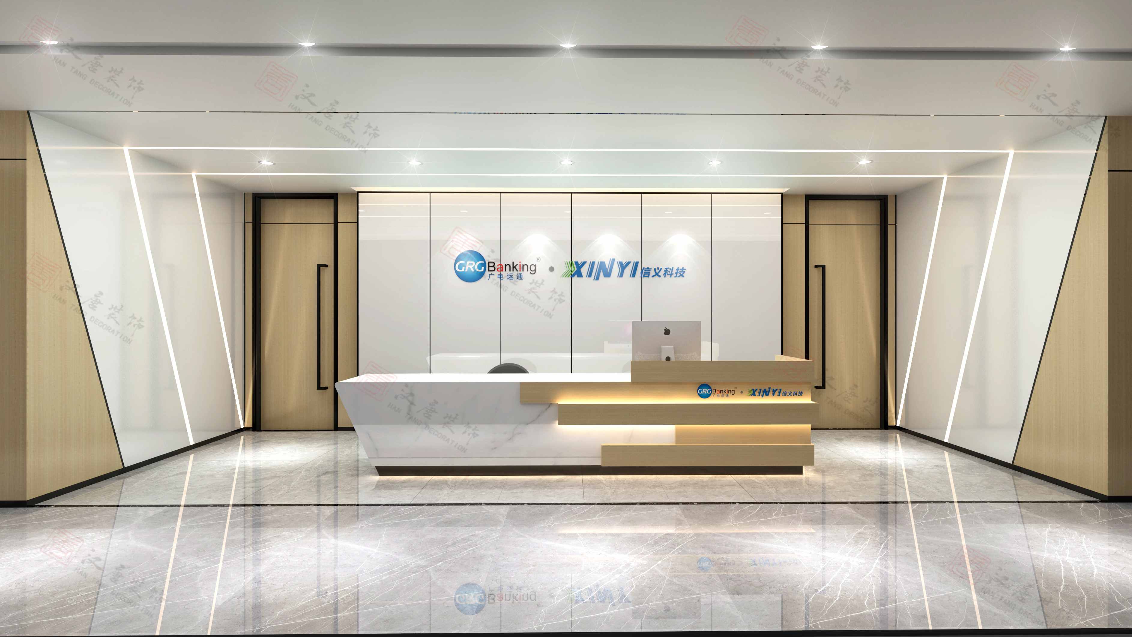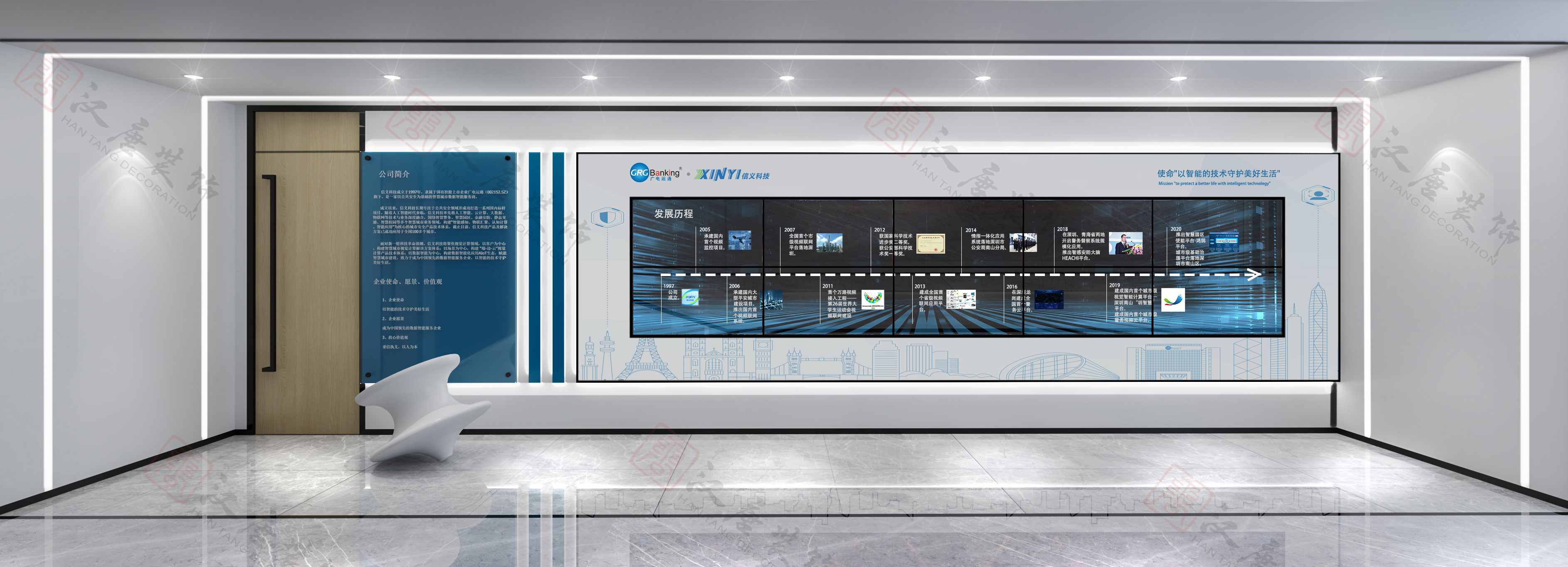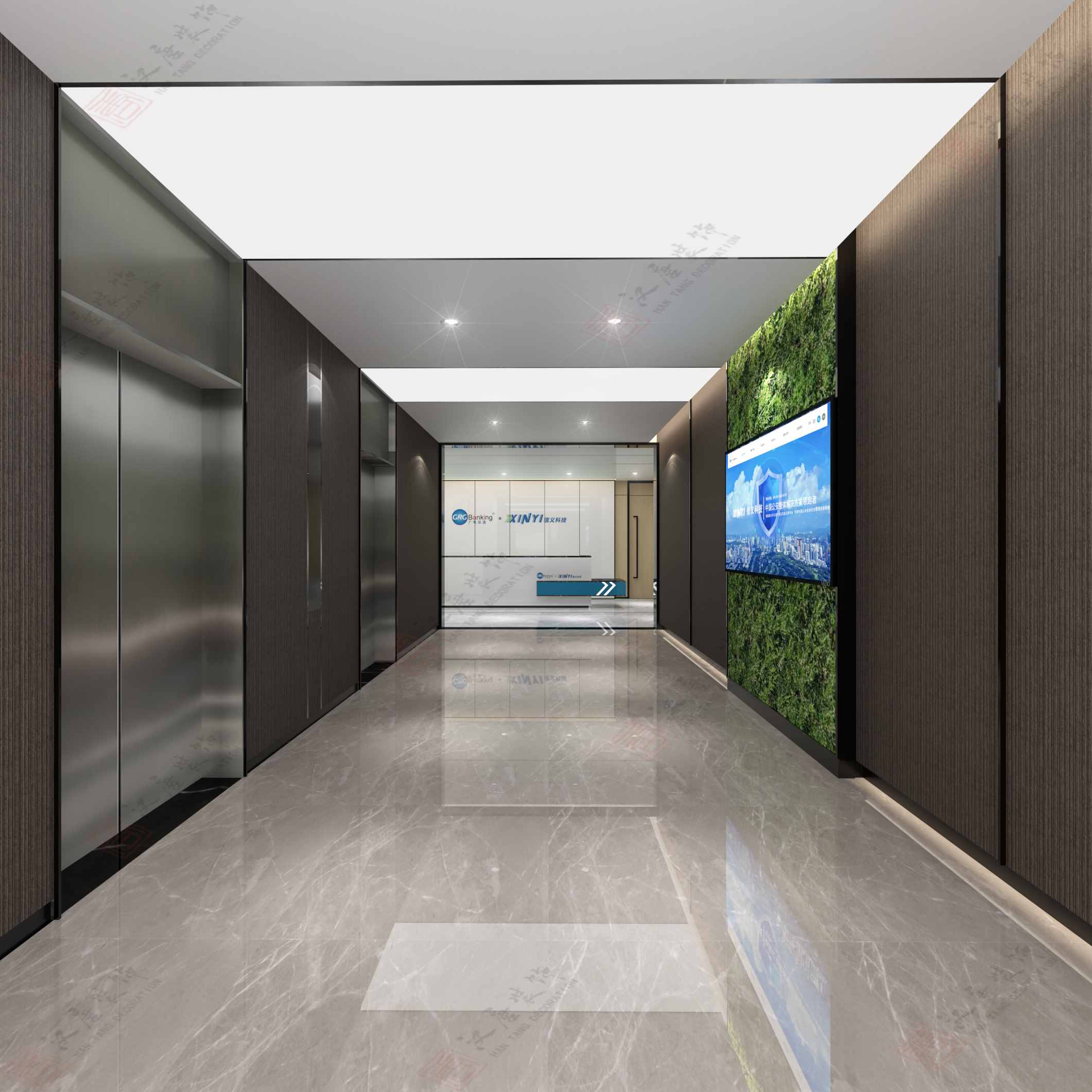 3.抽象层面:通过前章点、线、面的分析,矩阵其实是一个四通八达的“交互体”,代表着信息资源的高效准确传达、公司与客户之间有效精确的沟通以及公司内部之间良性的信息循环。“智”元素的加入,本意在给空间中增加一些灵活的元素,可能是一些通透的材质,可能是空间布局上的虚实对比,亦或是趣味的艺术品,让严谨的空间气质中凸显些许智慧的元素。