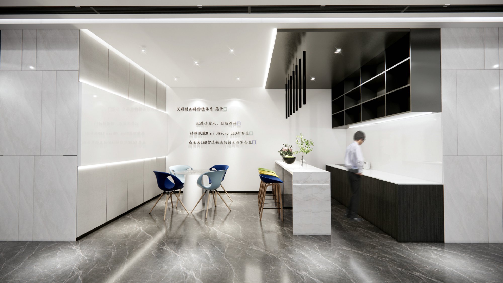 本项目是艾斯谱光电科技有限公司处于东莞松山湖总部办公室。客户公司致力于成长为LED智造领域的技术领军企业,所以我们在设计定位科技风格。