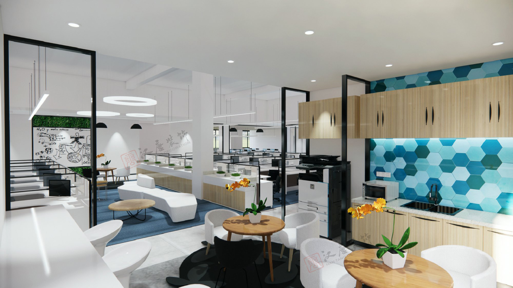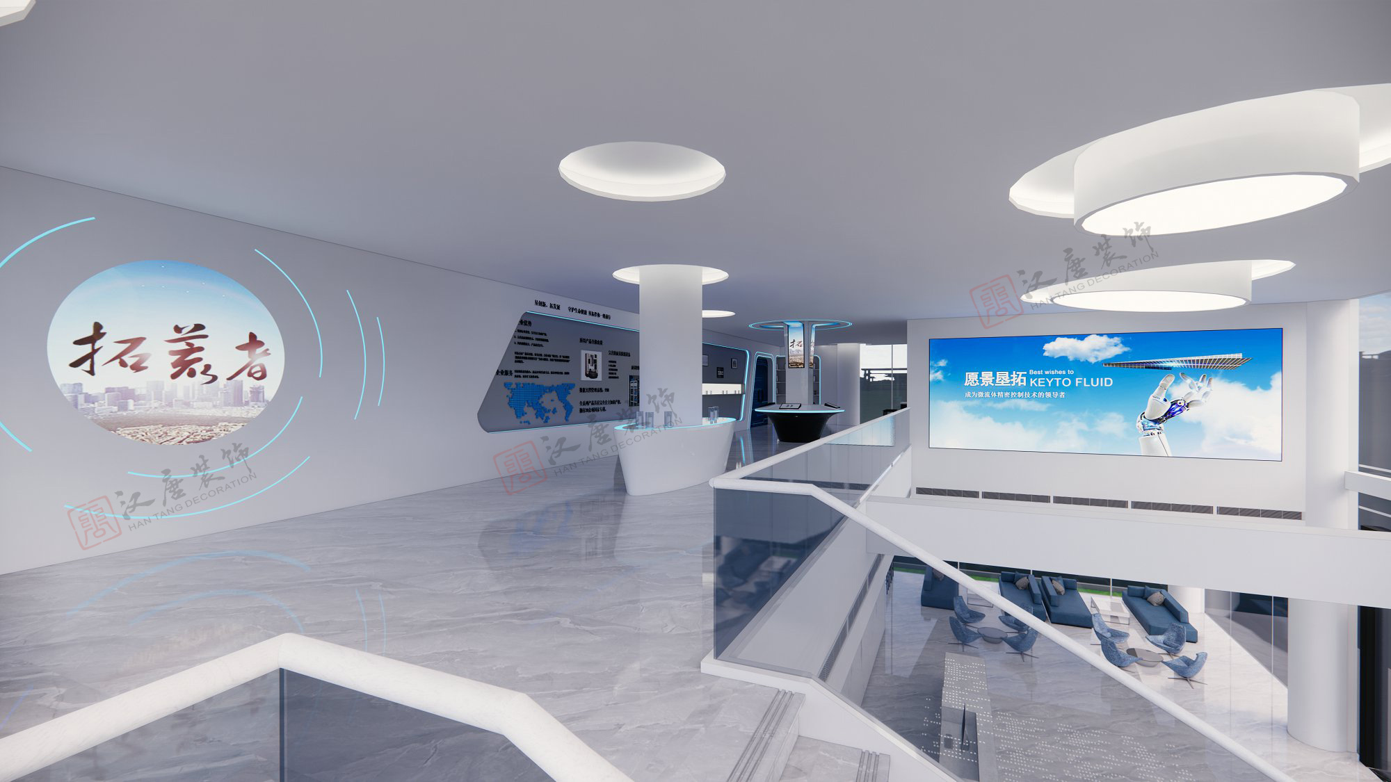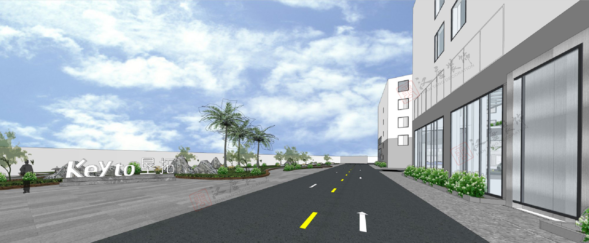项目面积:园区总占地1万㎡,包含一栋写字楼,一栋厂房,一栋宿舍,食堂,绿化占地5000㎡,园林整体规划,外观升级设计说明:分析现有地形、地貌,工业生产线的特点,结合园区的功能、交通和人性化等方面,进行规划与设计,设计内容包含大堂设计,展厅设计,办公设计,厂房设计,宿舍设计,园林绿化设计,园区动线升级改造。“拓荒者”,勇于开拓、大胆创新、努力耕耘、不断前进。是垦拓的奋斗精神,能为这样优秀的企业打造有温度的产业办公社区环境,是我们的责任。 我们规划了“园中园”,用现代手法重塑园区中的人际关系与产业网络。以冷静沉稳的灰白色调为主,理性有序,体现企业安全可靠的行业特点。利用双首层的理念,以曲线元素设置了双层大堂,在两层通高的主中庭空间,引用幕墙玻璃引入阳光,带来光影丰富的变化,外挑的旋转楼梯成为整个空间的视觉焦点。由下至上起着连接接待与参观展厅的关系。而在员工办公区域则布置别具特色休闲吧互动交流空间模块。运用温暖木色,营造活跃明快的交流休闲的氛围。既满足理性高效的灵活开放的团队工作,又激发年轻员工自由奔放的畅想与交流。