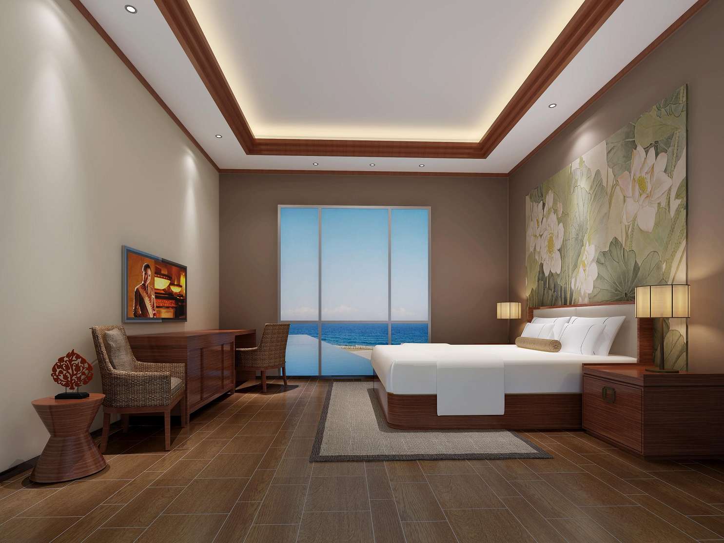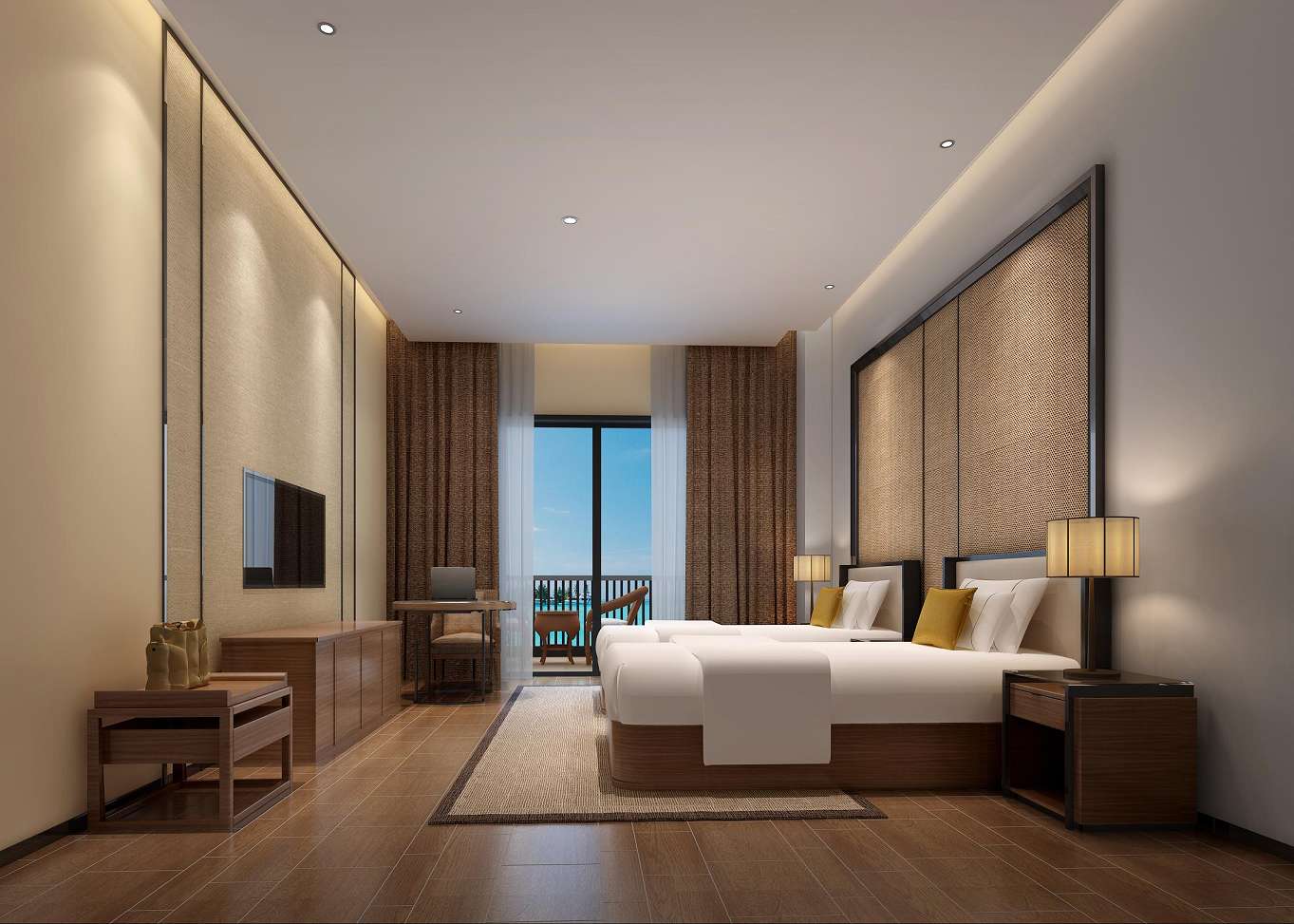 设计说明:深圳凤凰倚山别苑酒店位于盐田沙头角中心区,比邻区政府,背靠梧桐山,酒店周边自然环境优美,包含盐田区旅游“山、海、岸、港、街、城”六大特点,地理位置得天独厚。本案设计我们融入其风格以简约朴素为基础,大量融入了现代时尚元素,从而透露出低调奢华的气质。追求舒适、时尚、有品质的体验。所以,在设计上采用现代风格为主要基调,奠定其高雅的气质,在材料的运用上,让人感受细节的品味和空间的舒适。