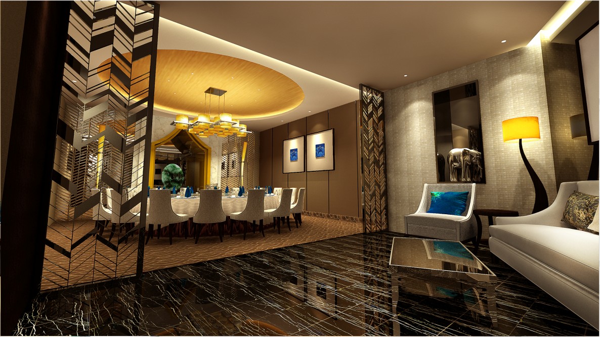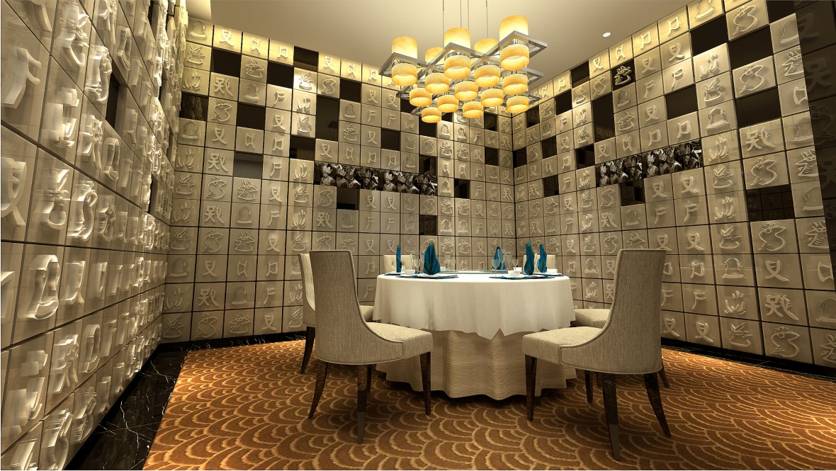 嵌入木质元素,带来宁静的空间意境,显得古朴高雅。金属、皮革、玻璃等现代元素的点缀,使得“东情西韵”的概念具象化,赋予时空穿梭回现代的时尚派。包厢的整体空间称既凸显了新中式的秩序美,错落有致中,渗透着细部别有精致。对每一位慕名而来的宾客,在喧嚣城市一隅优雅,别致的气氛中,在美酒佳肴,开怀畅饮间,享受亲情,友情,爱情。金属格栅,于朦胧中引光纳景,室内外的界限渐渐模糊化,素雅中涌动温润古韵。